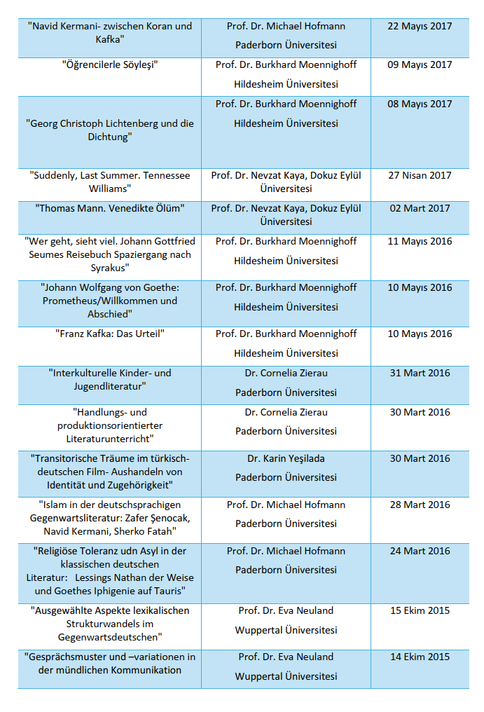 Faculty of Letters Department of German Language and Literature